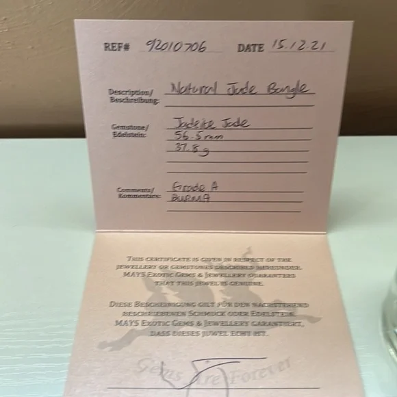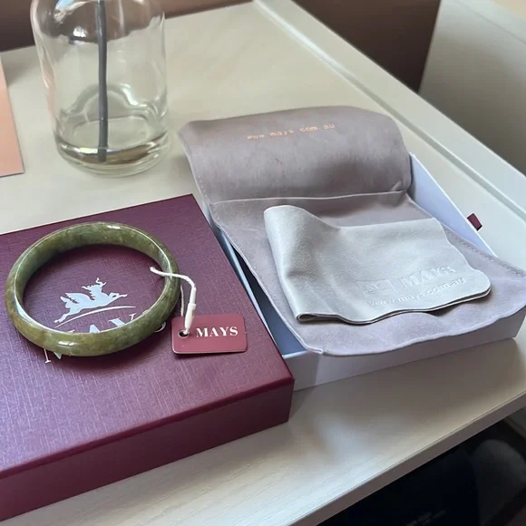*Authentic Mays jade bangle bracelet*Berma Grade A*NWT*gifted but never worn *Jadeite Jade*56.5mm*37.8 g *reference #92010706