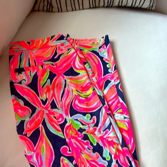 NWOT Lilly Pulitzer Kelly Ankle Pants. Hot Pink Multi Colored Print. Size 4.