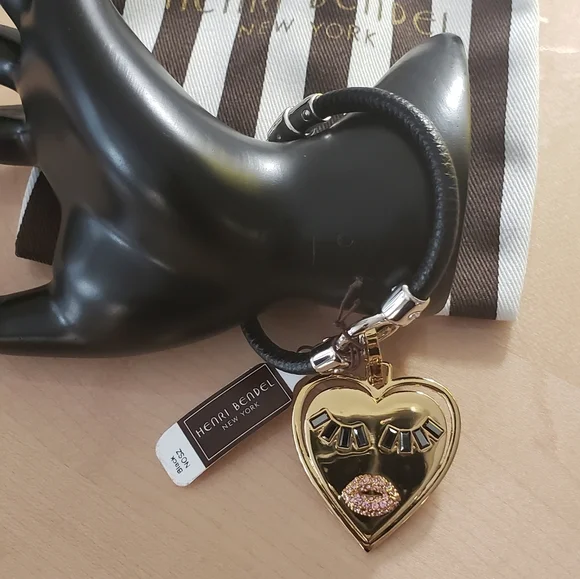 Henri Bendel Black Leather Charm Bracelet with Gold Heart Charm