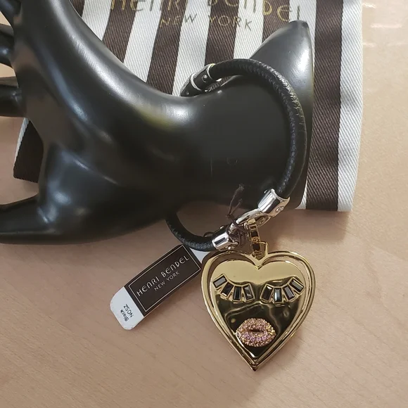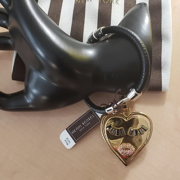 Henri Bendel Black Leather Charm Bracelet with Gold Heart CharmSize Small (Fit small wrist)NWT