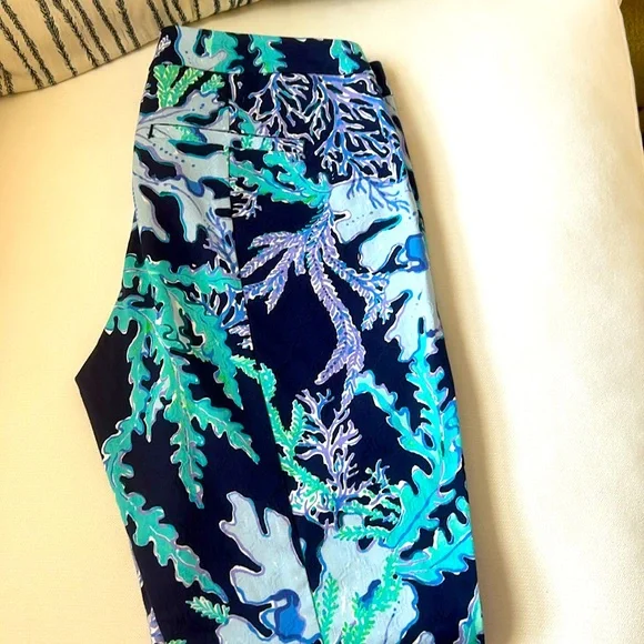 NWT, Lilly Pulitzer Kelly Ankle Pants. Deep Indigo Coral Motif. Size 4.