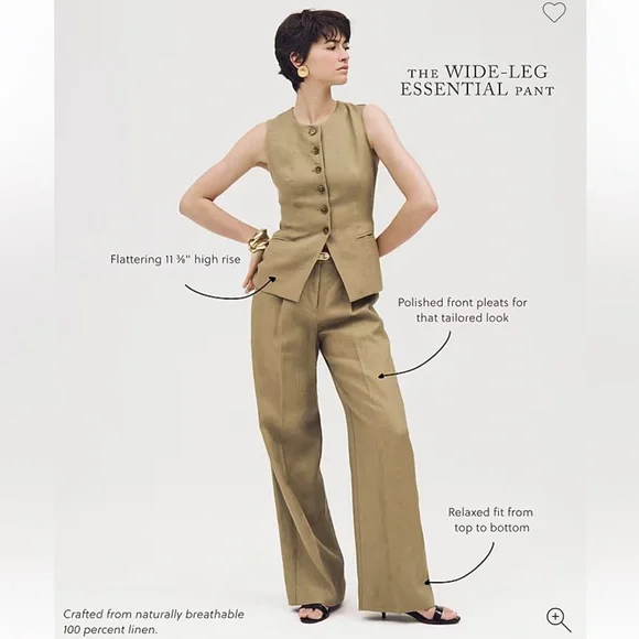 NWT J. Crew Women´s Wide Leg Essential Linen Pant Summer Classic Tailored