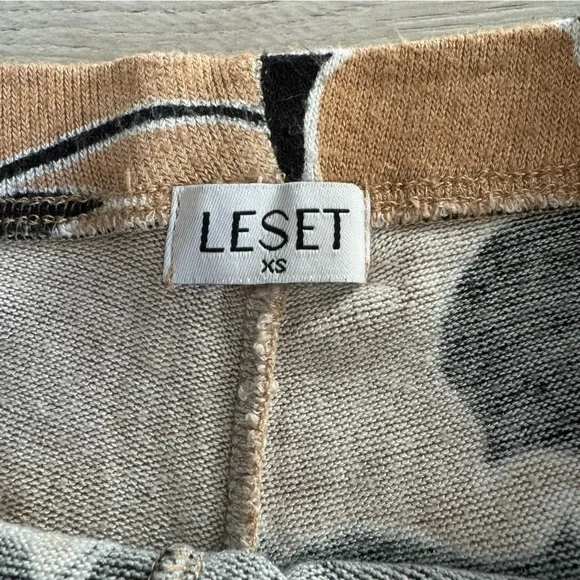 Excellent preowned condition Matching top also listedDESCRIPTION: LESET´s ´Lori´ pants are ideal for days spent lounging at home. Cut from smooth stretch-jersey that feels so soft against the skin, they´re decorated with bold blooms and have wide legs. Size: X-SmallColor: Tan, black Material: 96% viscose, 4% spandexFEATURES:High-rise, cut for a wide-leg fitMid-weight, stretchy fabricModel is 177cm/ 5´10" and is wearing a size XSmallMM