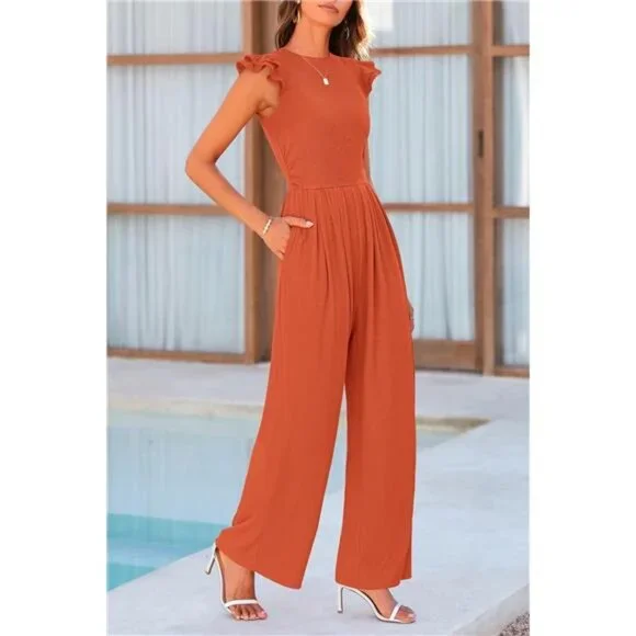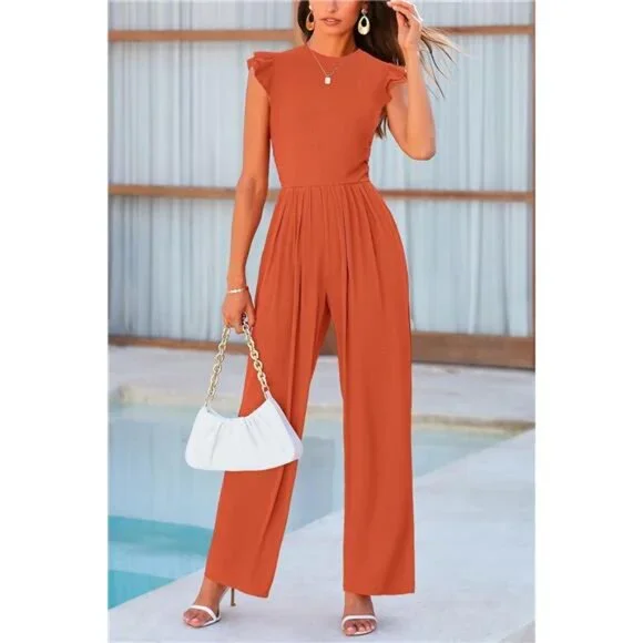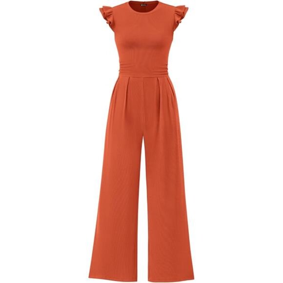 S=US 4-6,M=US 8-10,L=US 12-14,XL=US 16-18,XXL=US 20.Crafted From Soft and Stretchy Rib Knitted Fabric,This One Piece Jumpsuits for Women Ensures A Comfortable and Free Range of MotionThis Crew Neck Jumpsuits for Women Dressy Is Ideal for Summer and Spring.The High Waist,Concealed Back Zipper Jumpsuit,Ruffle Cap Sleeves Rompers and Wide Leg Pants Outfits Make It Both Stylish and Comfortable,Suitable for Any Outfits OccasionWomens One Piece Jumpsuit/Jumpsuits for Women Dressy/Crew Neck Rompers for Women/Ruffled Cap Sleeve Jumpsuits for Women/Summer Outfits for Women/Slim Fit Jumpsuits for Women/Pleated Waist Jumpsuit for Women/Concealed Back Zipper Rompers for Women