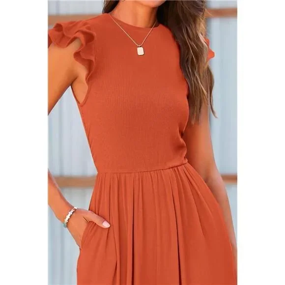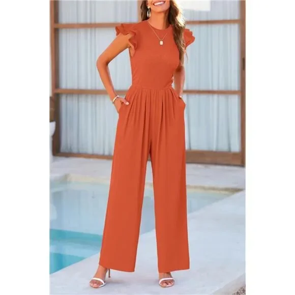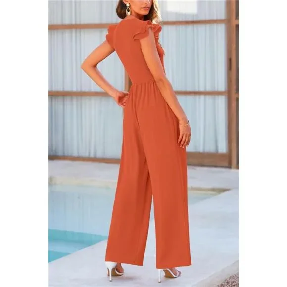 Summer Jumpsuits Ruffle Cap Sleeves Orange