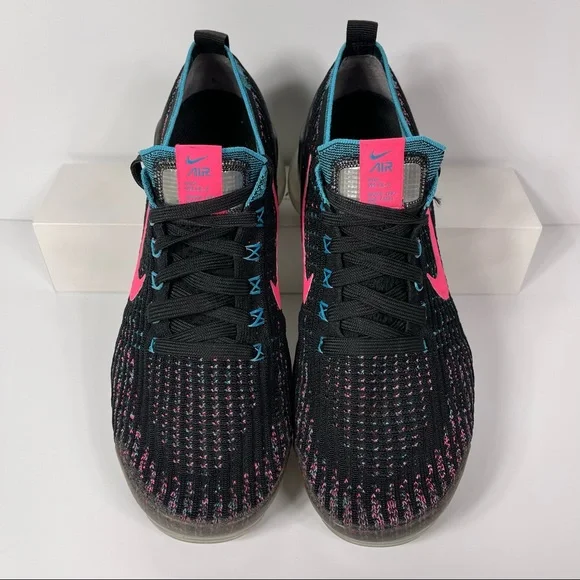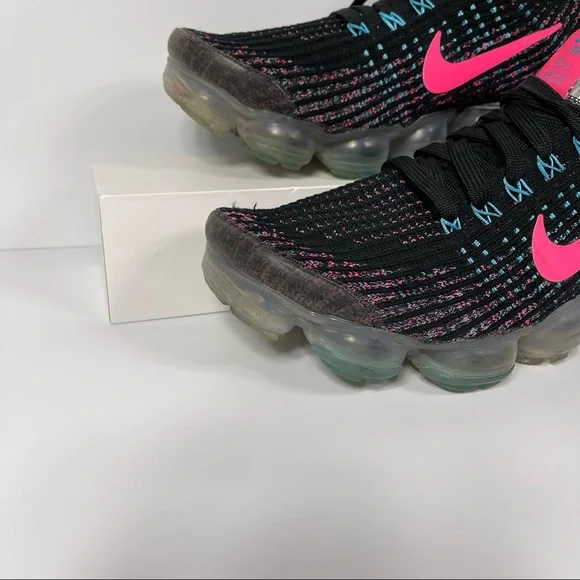 UP FOR SALE IS A USED PAIR OF NIKE AIR VAPORMAX FLYKNIT 3 BLACK HYPER PINK BALTIC BLUE WOMENS RUNNING SHOES SIZE 9. PRICE IS FIRM. IF OPTING FOR SHIPPING, I WILL SHIP SAME BUSINESS DAY FOR A FAST ARRIVAL TIME. I DO SHIP PRIORITY MAIL AND THE ITEM SHOULD ARRIVE WITHIN 1-3 BUSINESS DAYS. PLEASE REVIEW PHOTOS AND REACH OUT WITH ADDITIONAL QUESTIONS. THANKS FOR LOOKING!