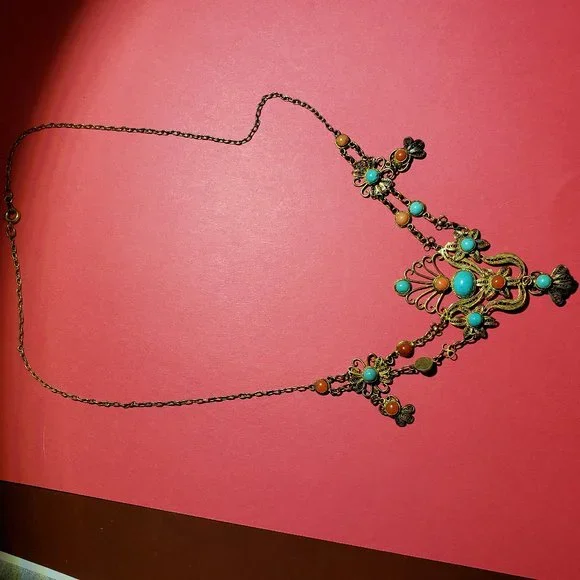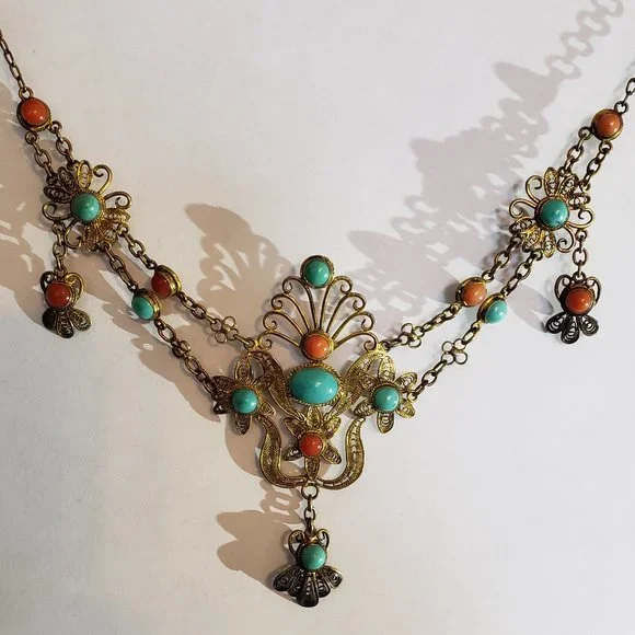 Gold over 925 Silver Turquoise & Red Coral Stones A very nice piece