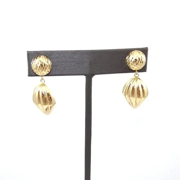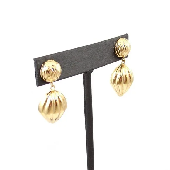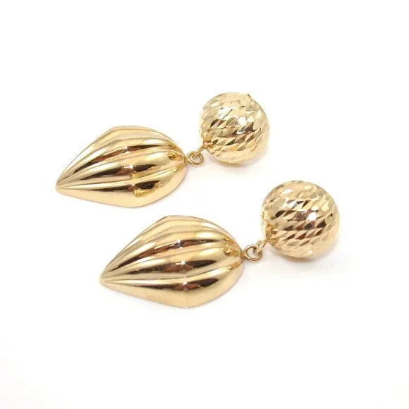 14K Yellow Gold Diamond Cut Fluted Dangle Earrings
