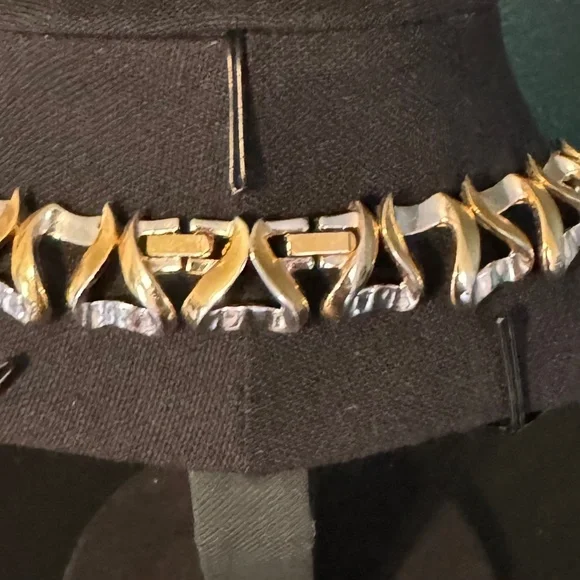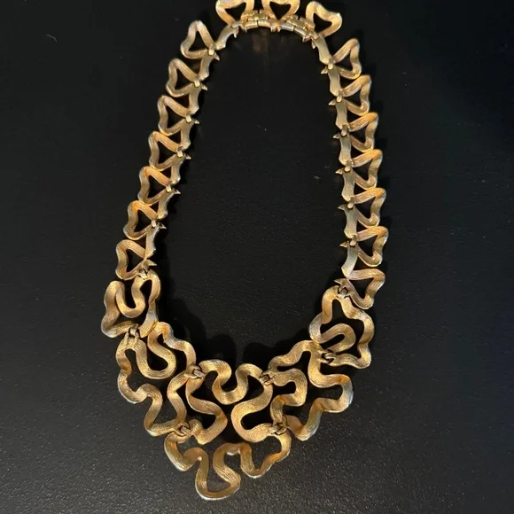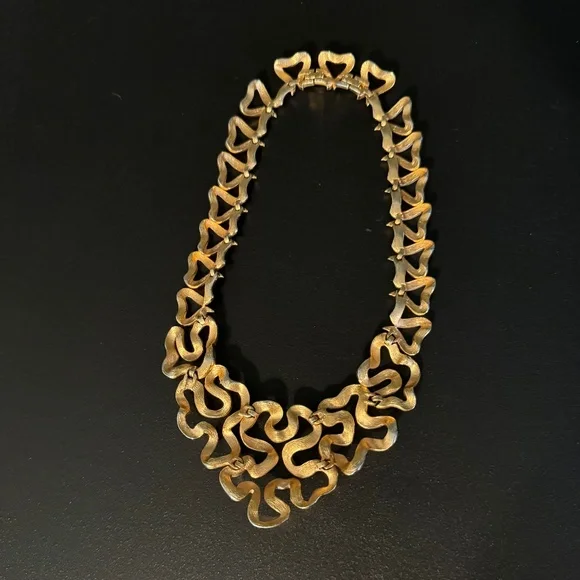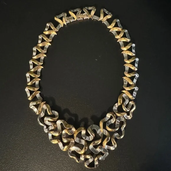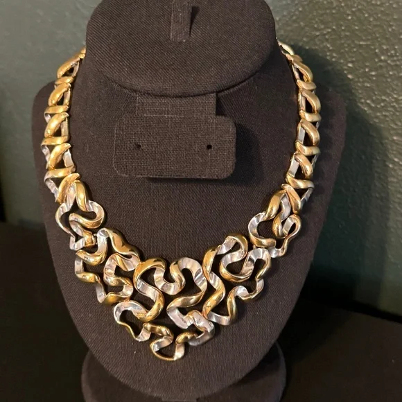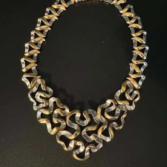 Phenomenal Statement Crown Trifari two-tone vintage bib necklace. Per photos one link can be removed to adjust length. Ot it can be added to another chain an worn as a minimalist...