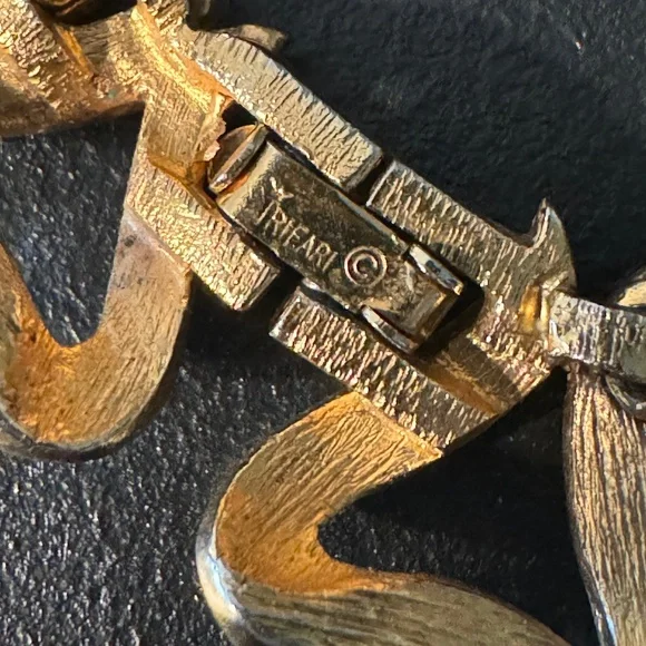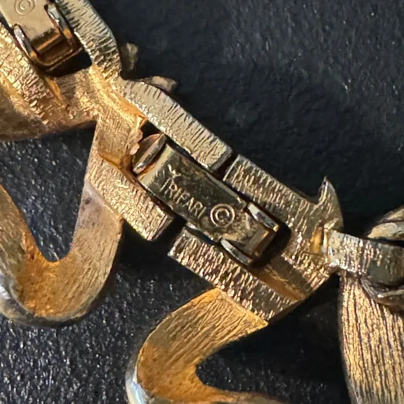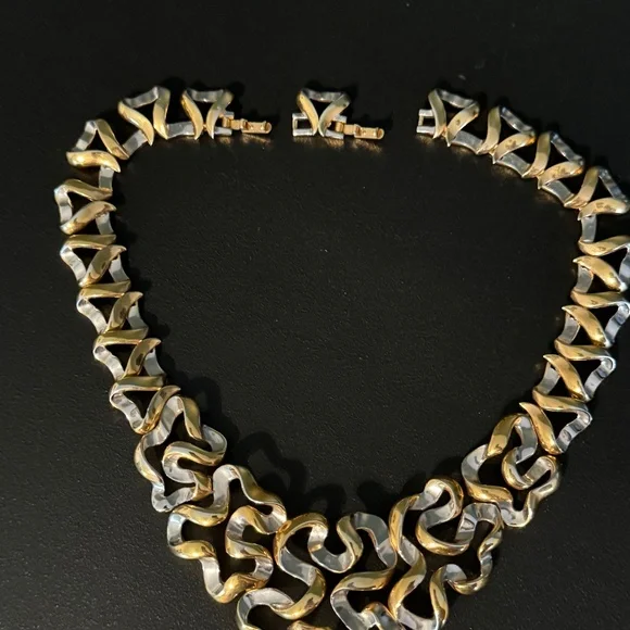 Vintage Crown Trifari Ribbon Bib Two-tone necklace