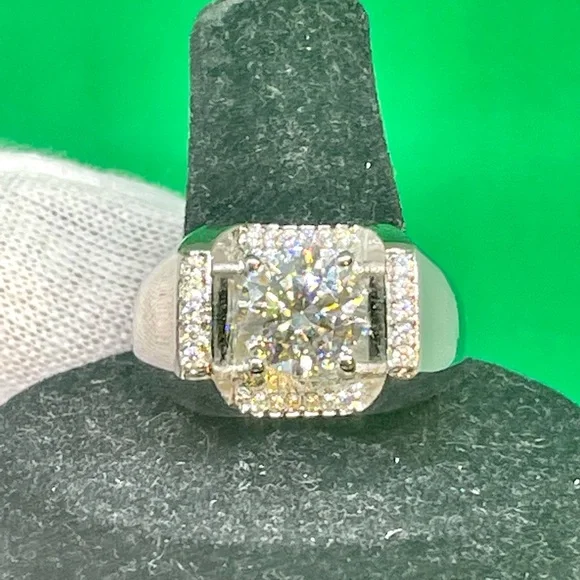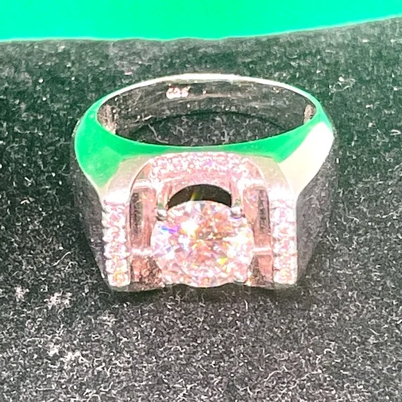 Add a touch of elegance to your favorite outfit with this stunning Morganite ring. Crafted from high-quality Sterling Silver (925), this ring features a beautiful Morganite stone in the center, surrounded by sparkling clear Morganite stones. The Morganite stone is a clear color, making it a perfect choice for any occasion. The ring is size 8.5 and is designed to fit comfortably on your finger. The ring is perfect for those who love fine jewelry and want to add a touch of glamour to their style. This ring is new and has never been worn before, making it a great choice for anyone looking for a high-quality piece of jewelry to add to their collection.Cat. R75