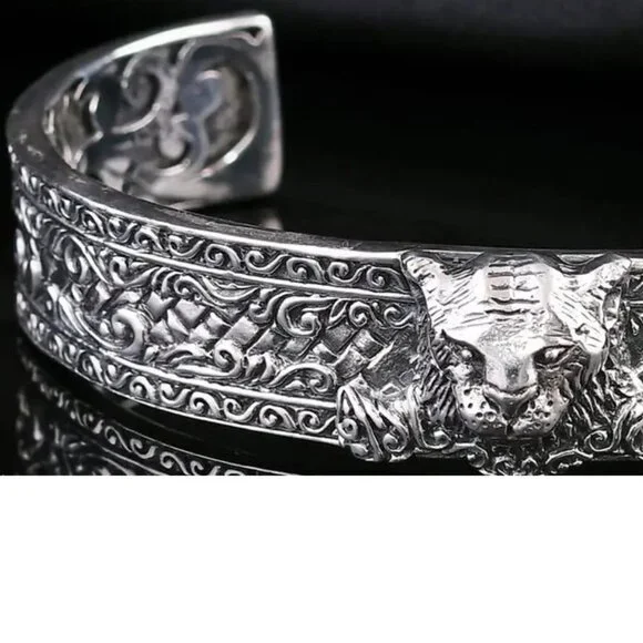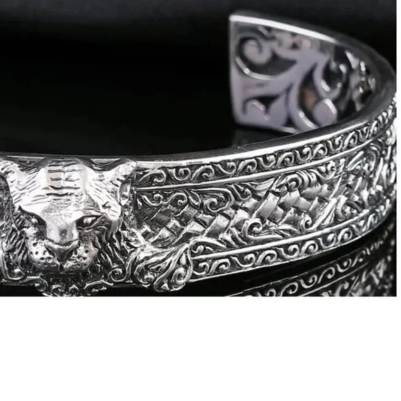 Sterling Silver Lion Cuff Bracelet (7.25 inches)