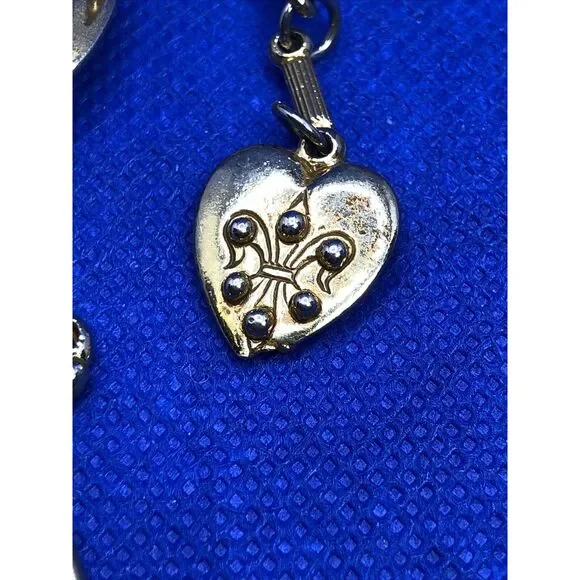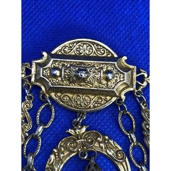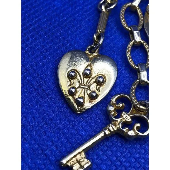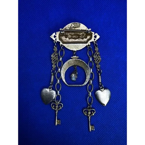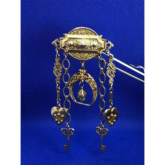 Mid Century Coro Pegasus Gold Tone Hearts Keys Love Chatalaine Style Pin Brooch