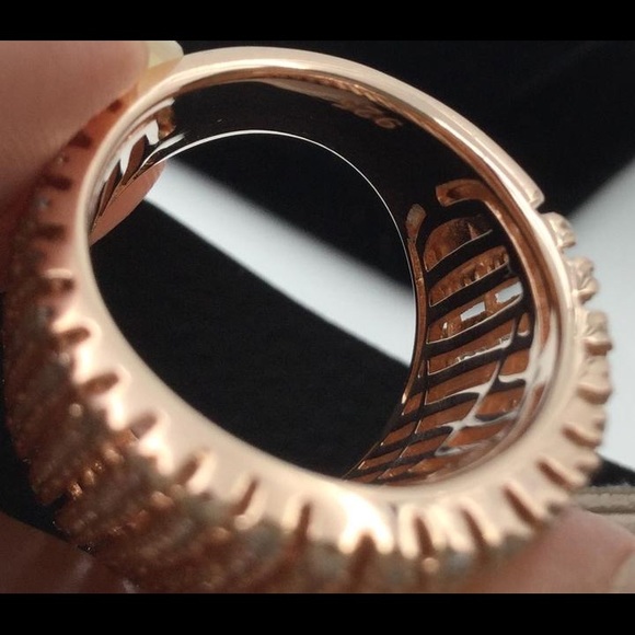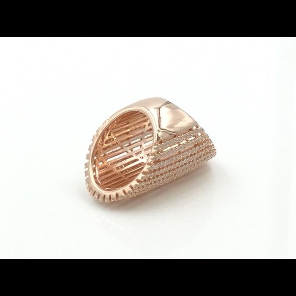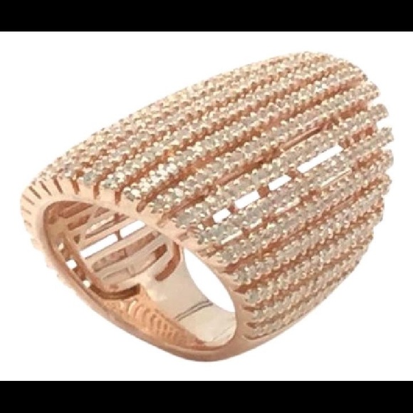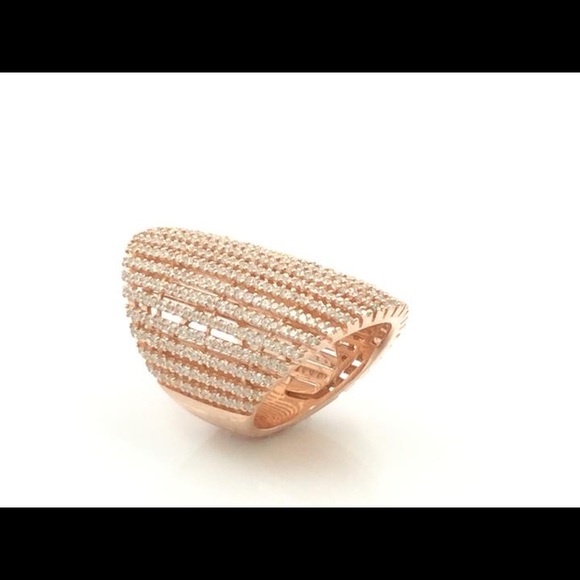 A great fashion piece...big and bold!This ring is rose gold plated.925 sterling silver. The stamp is in the inside of the ring as seen in the last picture. The cubic zirconia used...