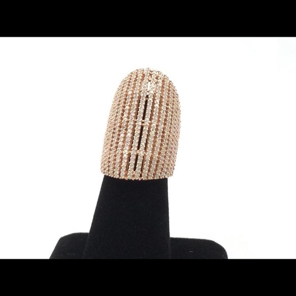 A great fashion piece...big and bold!This ring is rose gold plated.925 sterling silver. The stamp is in the inside of the ring as seen in the last picture. The cubic zirconia used is a high quality stone. The ring measures 1 1/2" approximately in length. The ring is also rhodium plated which will help it keep its shine and color.
