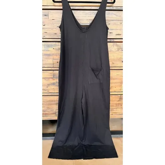 MATE The Label Tencel Lounge Henley Cropped Black Jumpsuit Sz S
