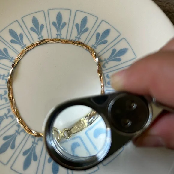 Beautiful Tri-tone gold 14k woven bracelet marked 14kt and Italy. This super sparkly, beautiful piece is ready for your next special event!