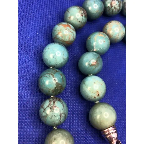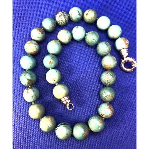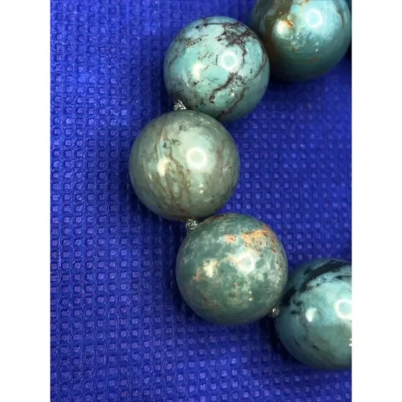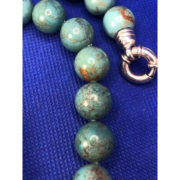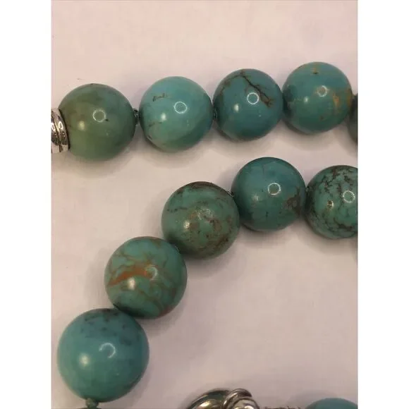 * Whitney Kelly 925 Sterling Silver Turquoise Beaded Hand Knotted Chunky Necklace* Length: 18"* Width: 9/16"* Weight: 104.6g* 29 Turquoise beads measure approximately 14 mm each*...