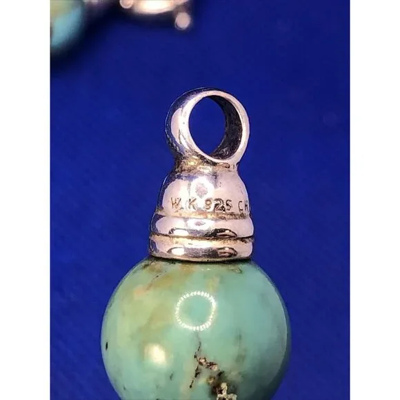 * Whitney Kelly 925 Sterling Silver Turquoise Beaded Hand Knotted Chunky Necklace* Length: 18"* Width: 9/16"* Weight: 104.6g* 29 Turquoise beads measure approximately 14 mm each* Closure: Spring ring* Marked: WK * 925 * CHINA * Condition: As pictured. ( ZAH )* S5529
