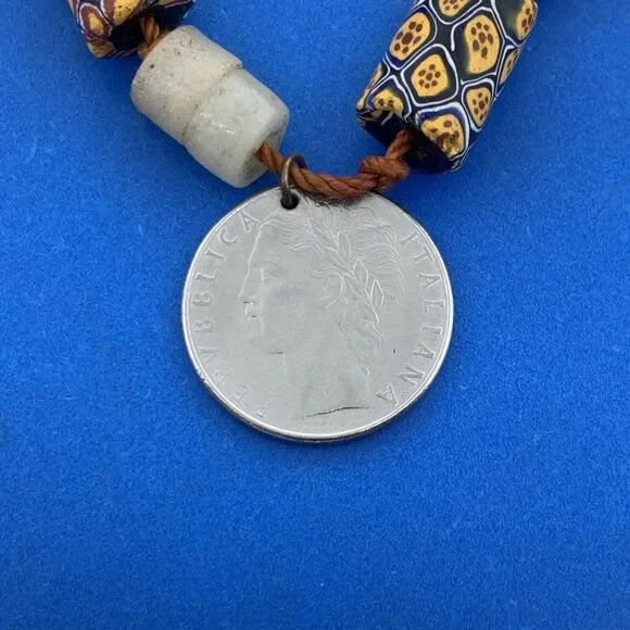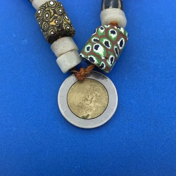 1970´s Runway Couture Italy Millefiori Clay Bead European Coin Agate Necklace