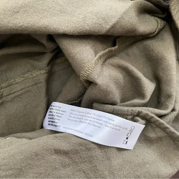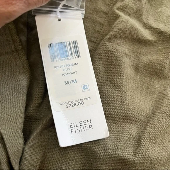 Beautiful new with tags NWT Eileen fisher olive green cotton crepe linen blend Lagenlook boho jumpsuit. Women’s size medium. Does have an oversized look. Great condition— light bending to the tags as shown. See photos for full condition and measurements. Thank you!