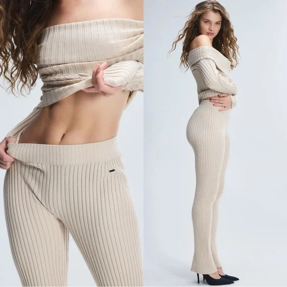 NWT FENTY x Savage Tres Soft Sweater Nude Ribbed Lounge Pants Joggers
