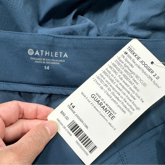 NWT Athleta Women’s Trekkie Joggers 2.0 Pants Outdoor in Constellation Blue 14