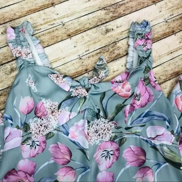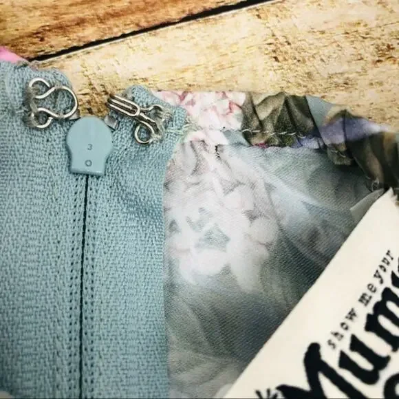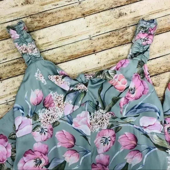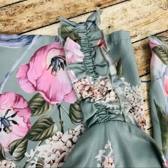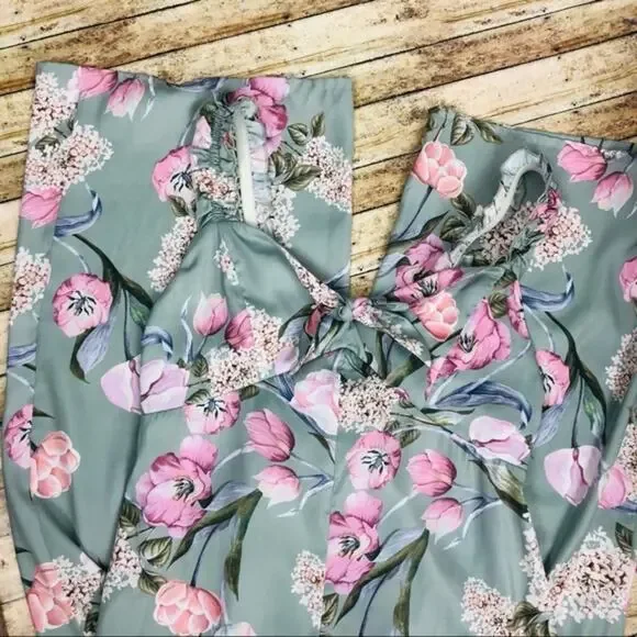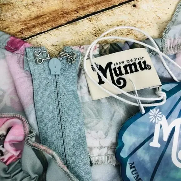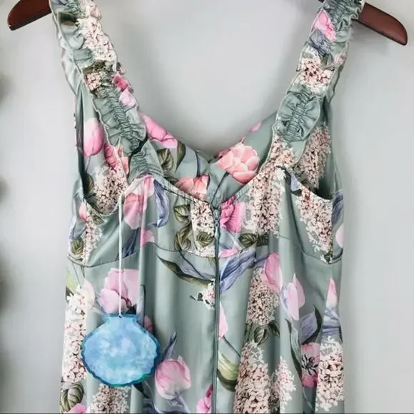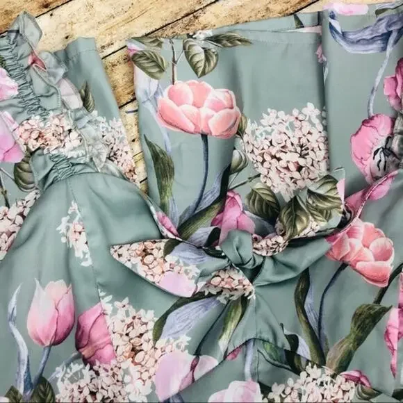 NEW WITH TAGS Show Me Your MuMu JumpsuitGorgeous Primavera Floral PrintSatin FeelCropped LegsElastic Shoulder StrapsBack Zipper No size/material tag, May be a SampleBest guess is smallChest 16”Inseam 24”