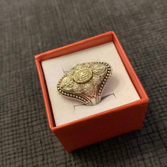 T&C 14K, Sterling Silver and Diamond RingMarked: 14k, 925, and T&CSize: 7 Diamonds have all been tested and are real.This will arrive with a free silver cleaning cloth. When making an offer please keep in mind thattakes 20%. In addition it costs me supplies to ship (ink, paper, bubble wrap/tissue, gift boxes, silver cloth cleaners gas to post office and labor for posting. I’m asking to please keep this in mind and be fair.J821-37846714/7196