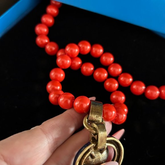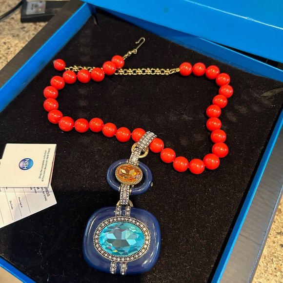 Heidi Daus "Super Chic"Necklace Crystal Enamel Coral Blue-New in Box