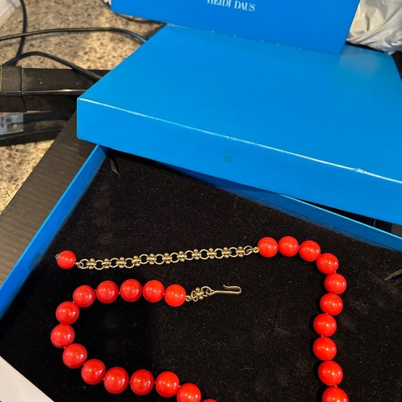 Absolutely Gorgeous Heidi Daus Super Chic necklace.Set your summer style on fire with Heidi´s Super Chic Crystal & Enamel Necklace! Featuring a chic pendant drop rendered in smooth enamel. A statement sizedcrystal gives this special piece added glamour and sparkle. Never worn, new in box. Measurements : 16" Land a 4" extender (see photos for measurements)Drop Measurements : 4" drop (see photos for measurements)