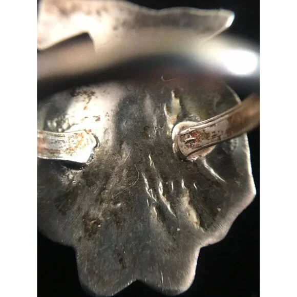 Vtg 1960´s Zuni Thunderbird Turquoise Mother Of Pearl Onyx Coral Bezel Set In Sterling Silver Ring Size 3 1/4This ring is from our large collection of Turquoise vintage...
