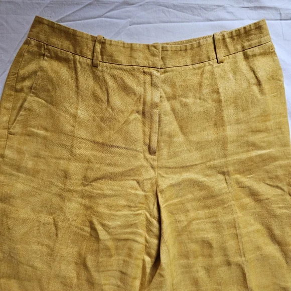 Lafayette 148 NY Linen Mustard High-waist Wide-leg Summer Pants- fabric ideal for summer, no stretch- versatile style, could even be styled to the office, or up-styled for an...