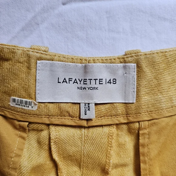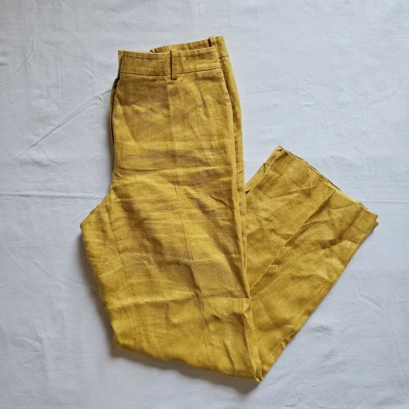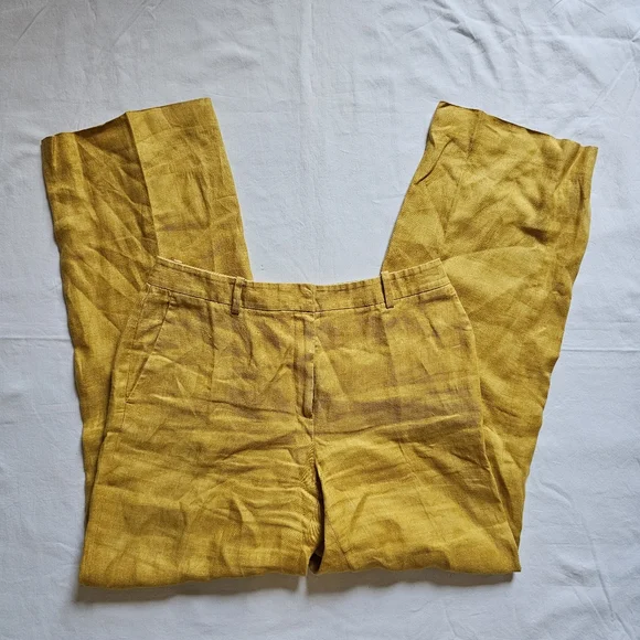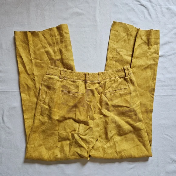 Lafayette 148 NY Linen Mustard High-waist Wide-leg Summer Pants Size 8