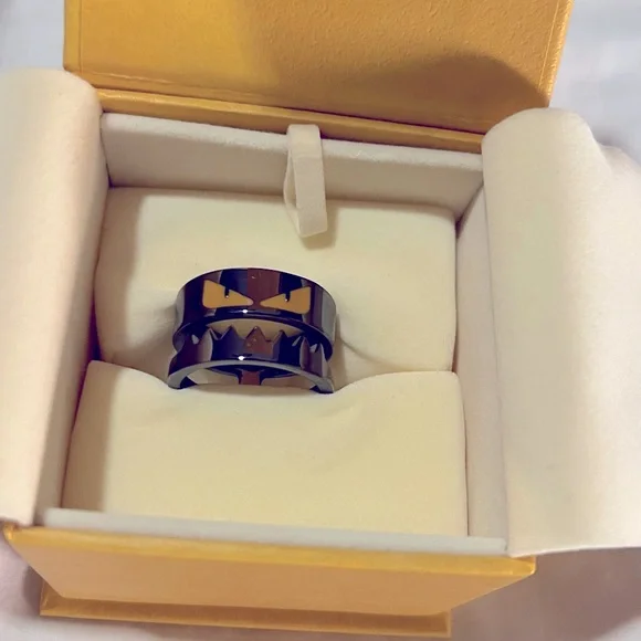 Authentic Fendi Enamel Bag Bug Band Ring Size 8.5