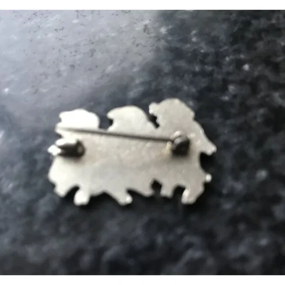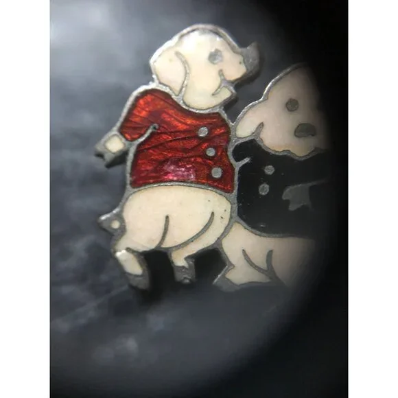 Vintage 1940´s Three Pig Enamel Pin Brilliant Colors Silver Edging Beige Red