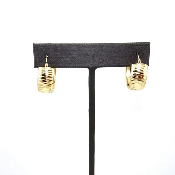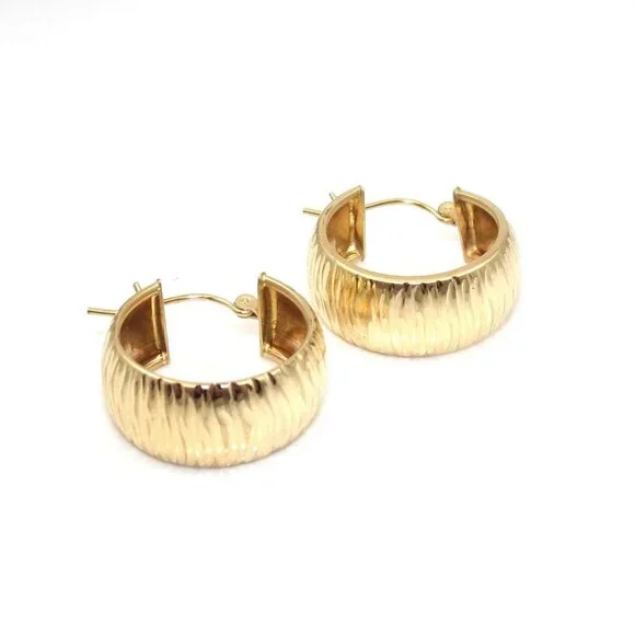 14K Yellow Gold Wavy Hoop EarringsLENGTH X WIDTH (MM) ~ 21 x 21GRAM WEIGHT ~ 3.1HALLMARKED ~ YESTESTED ~ YESPlease contact me with any issues or questions. Thank you for your interest and business.--------------------------------------CJJ-10-AC459-A1
