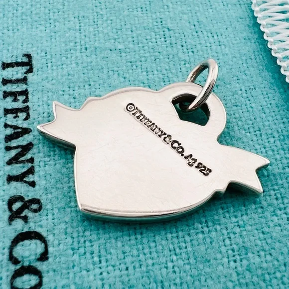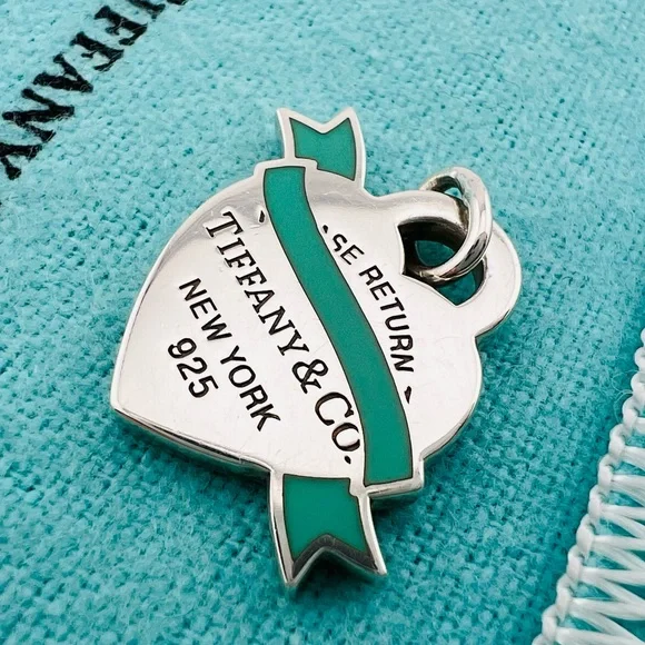 Return To Tiffany Banner Heart CharmEnamel in good condition *** Please review all photos carefully. Item comes with pouch or box that available at the time of purchase.