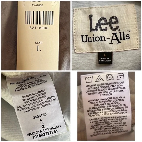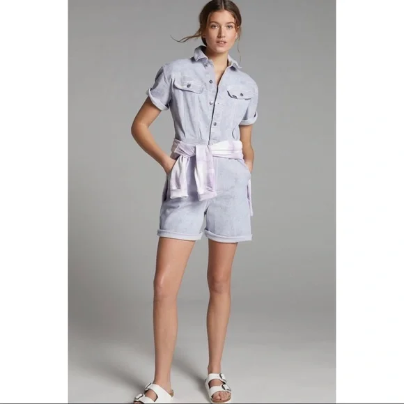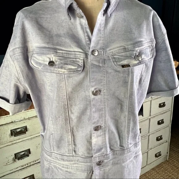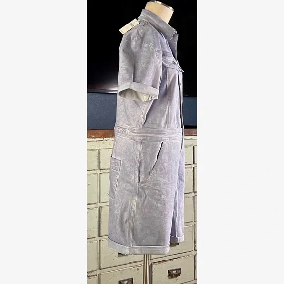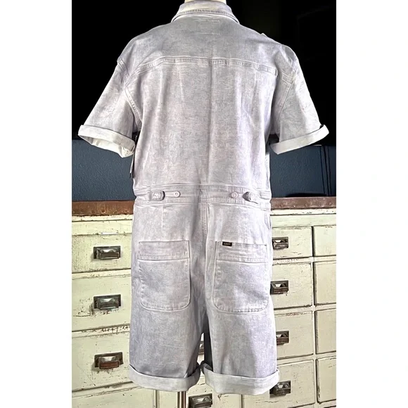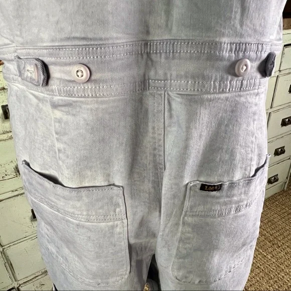 New With TagsSize LargeThis tie dye short coveralls by Lee have a grey blue wash.They are 98% cotton & 2% spandex for a little stretch.They have a button & zipper fly...