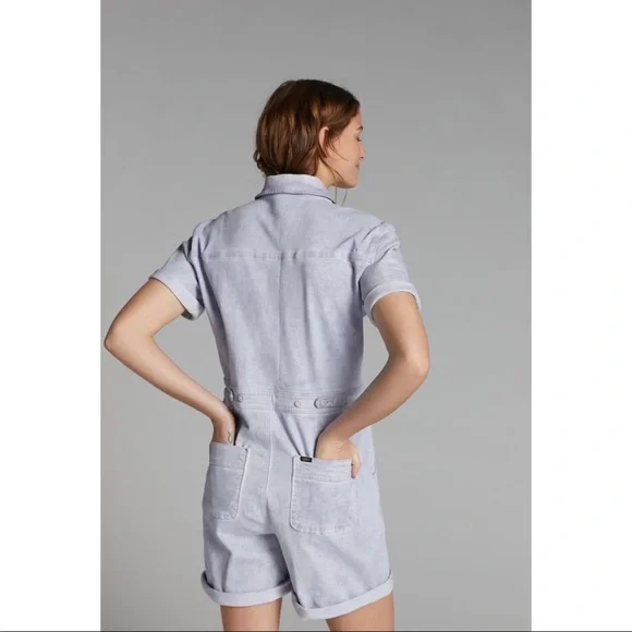 New With TagsSize LargeThis tie dye short coveralls by Lee have a grey blue wash.They are 98% cotton & 2% spandex for a little stretch.They have a button & zipper fly closure.Measurements laying flat:Length cuffed 37.5”Uncuffed 39”Inseam cuffed 5”Bust 22”Waist 19.5”Hips 22 1/4”Torso 34”