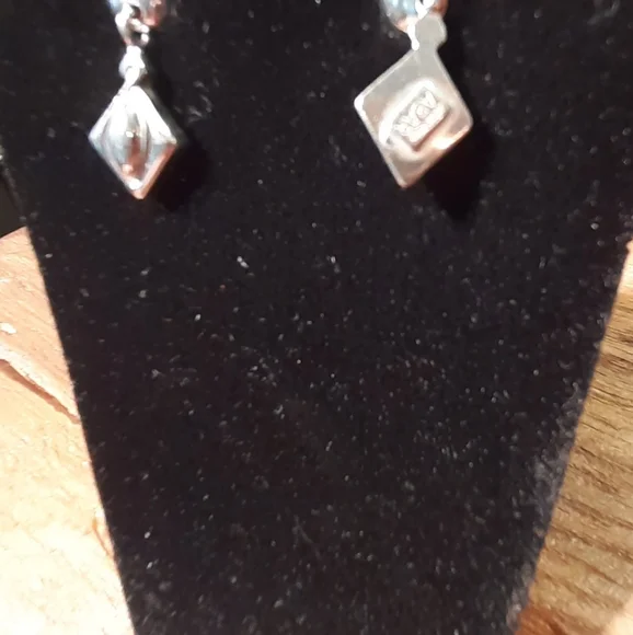 18 K white gold ABAR diamond shaped diamond style earrings. They weigh 2.7 Grams and measure 3/4 inch. Stamped ABAR . They are preowned and in excellent condition.