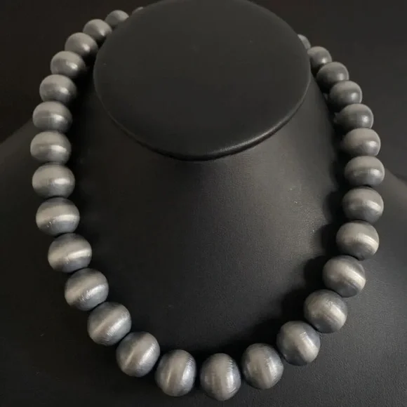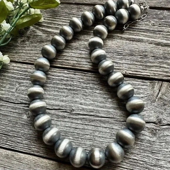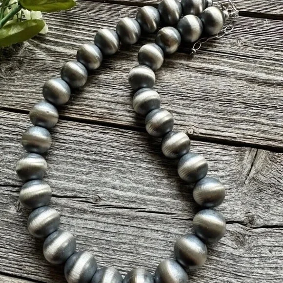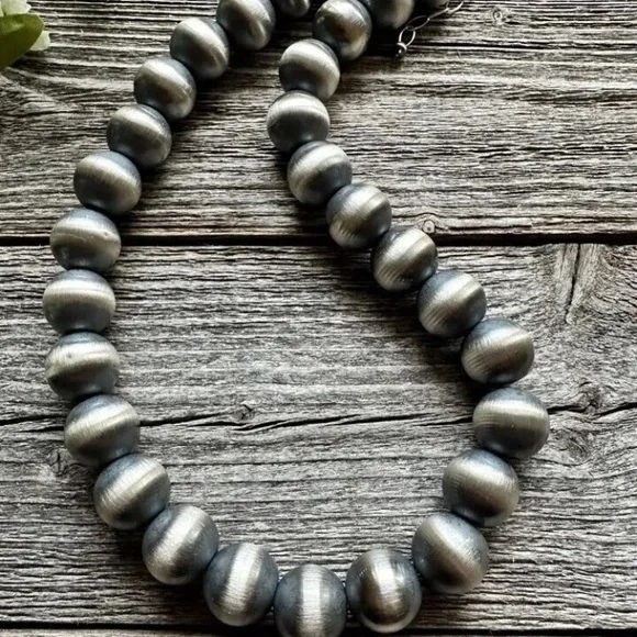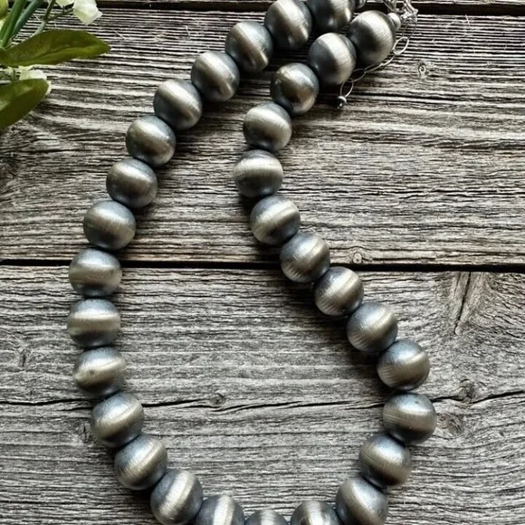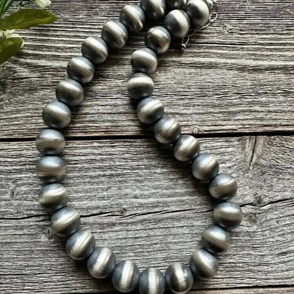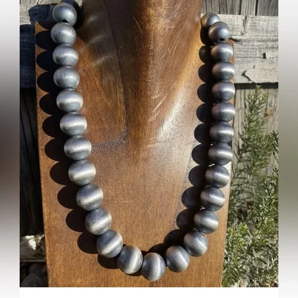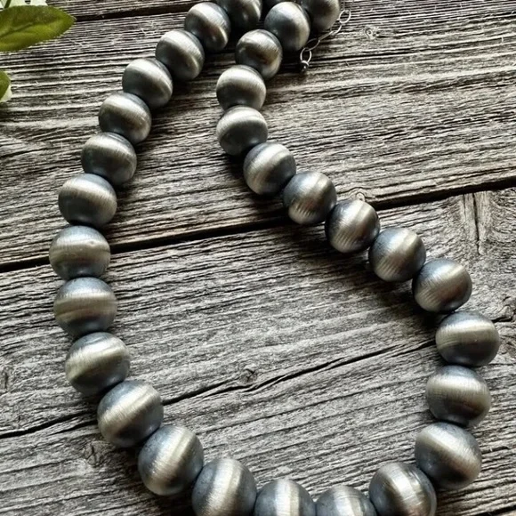 Southwestern 16mm 18 Inch 925 Sterling Silver Oxidized Pearls Bead Necklace.Lobster clasp and extender chain.Best Offers Accepted!