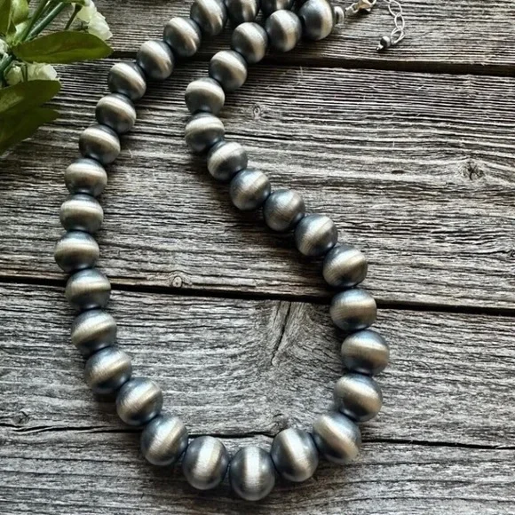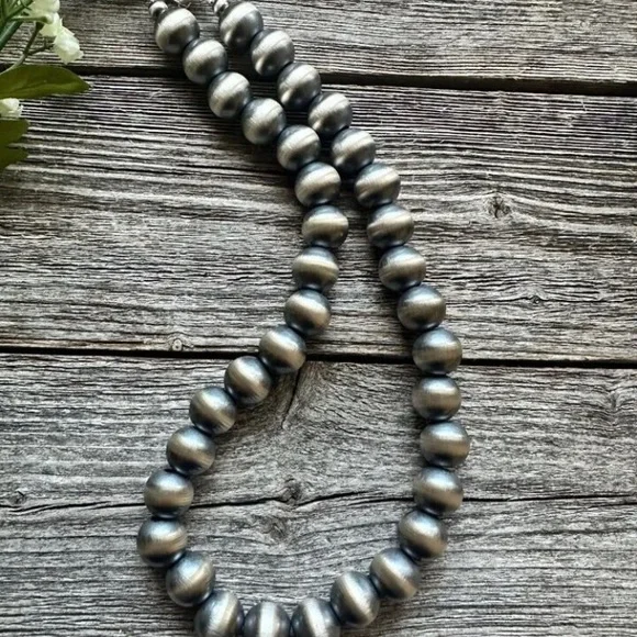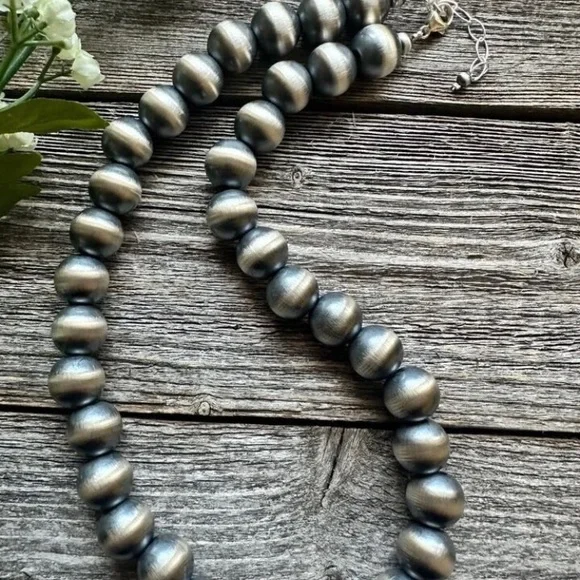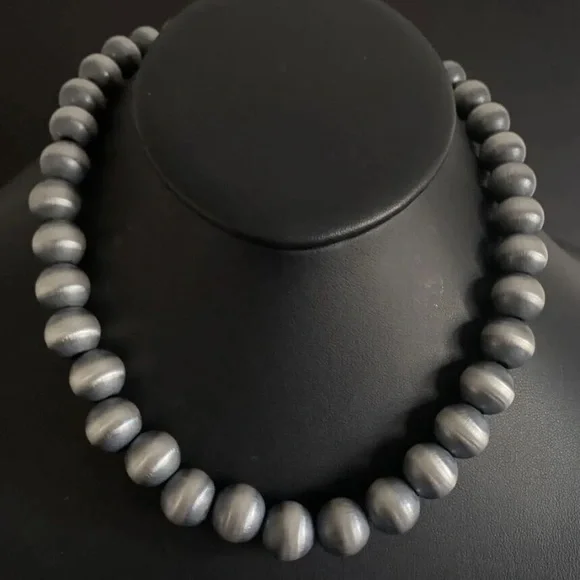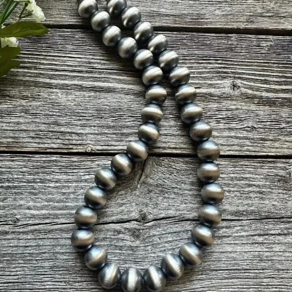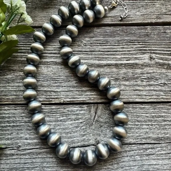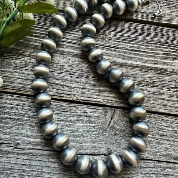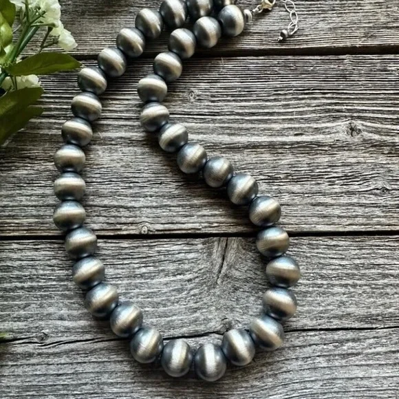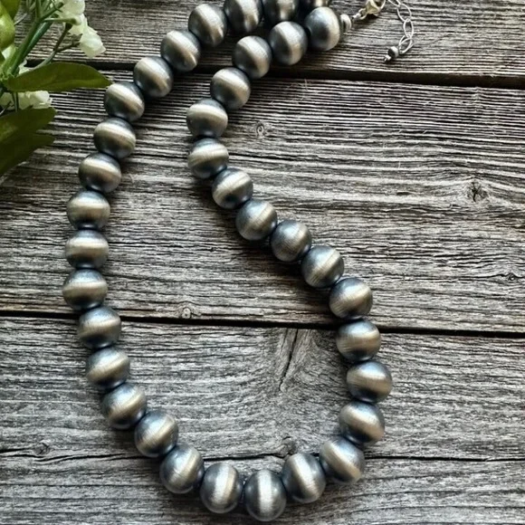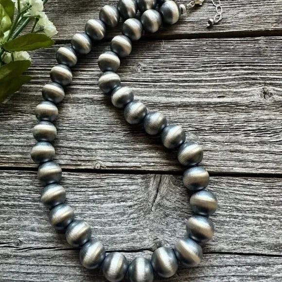Southwestern 14mm 20 Inch 925 Sterling Silver Oxidized Pearls Bead Necklace.Lobster clasp and extender chain.Best Offers Accepted!