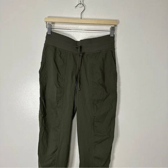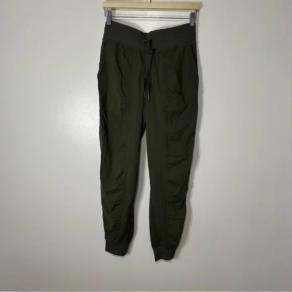 NWOT Lululemon Dance Studio Mid-Rise JoggerDARK OLIVE SIZE 6SwiftWoven for strength and no-bulk performance, lightweight Swift fabric is two-way stretch and sweat-wicking to move with you and stay out of your waytwo-way stretchlightweightwoven for strengthFeaturesDesigned for: On the MoveDrawcord: Customize the fit with the drawcord in the waistbandHidden pocket: Hidden pocket to stash your cards and keyMedium-rise: Higher rise increases coverage and comfortInseam: 29"Secure pocket: Zippered pocket keep your phone and cards safe