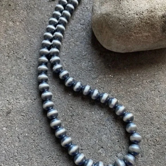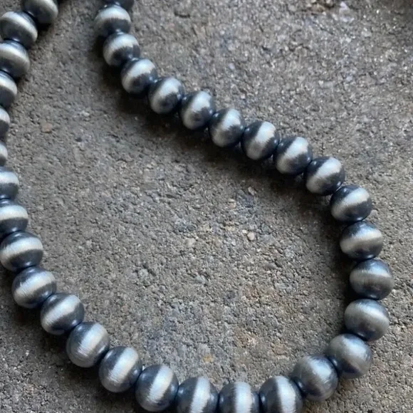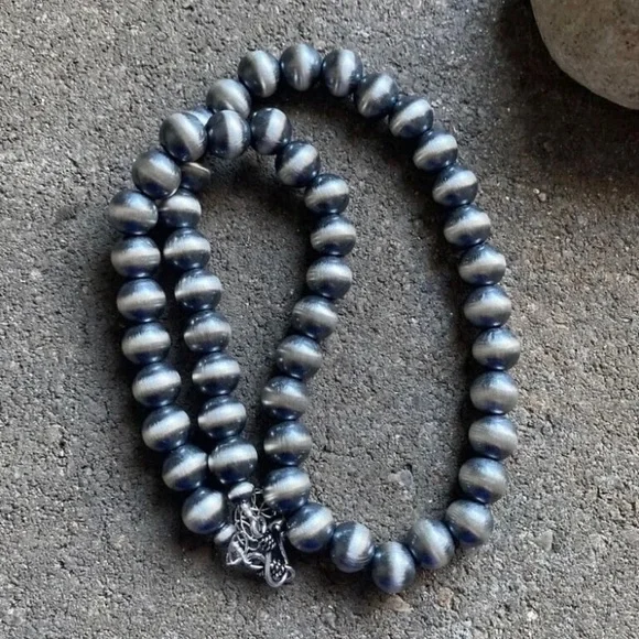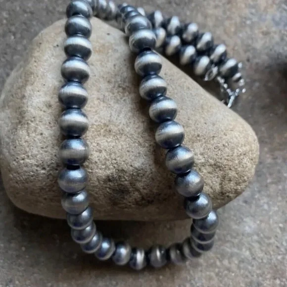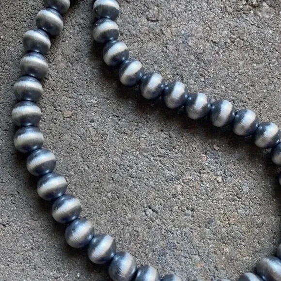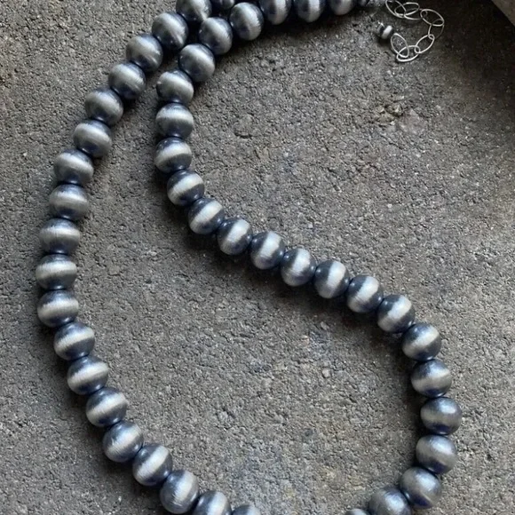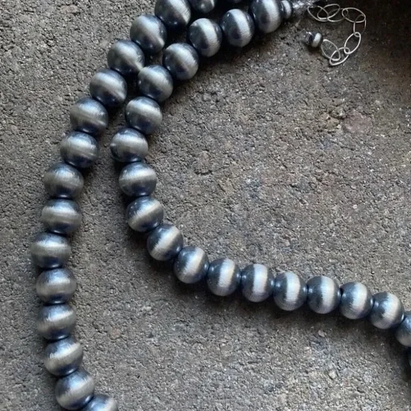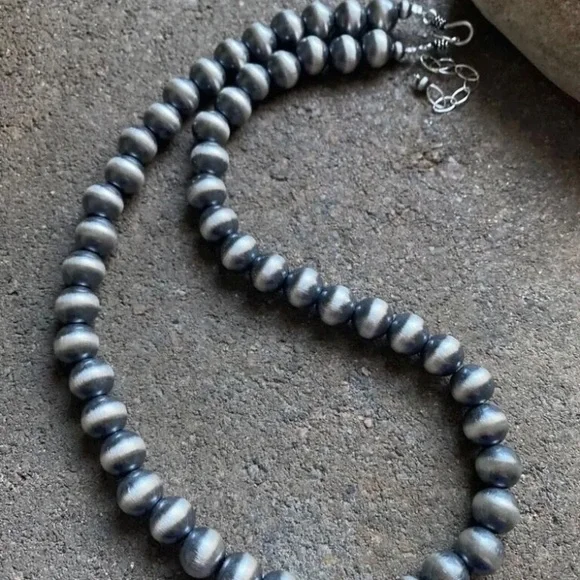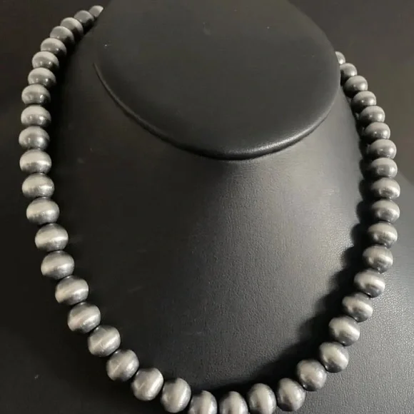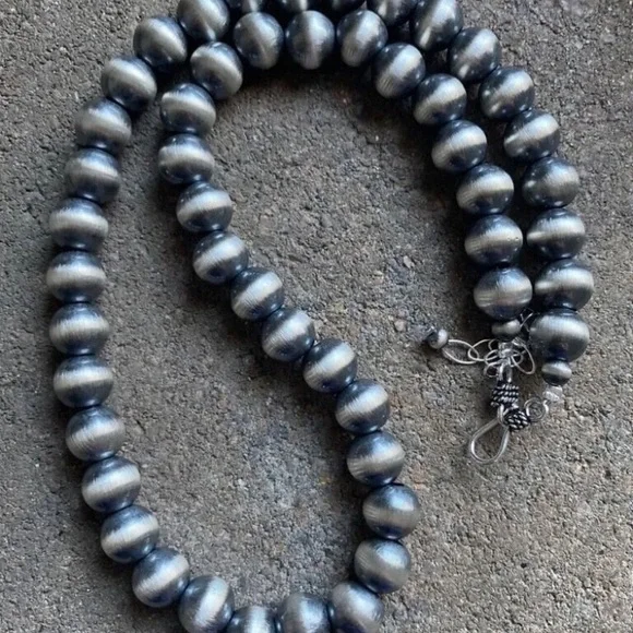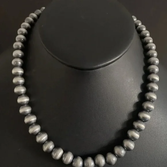 Southwestern 10mm 24 Inch 925 Sterling Silver Oxidized Pearls Bead Necklace.Lobster clasp and extender chain.Best Offers Accepted!