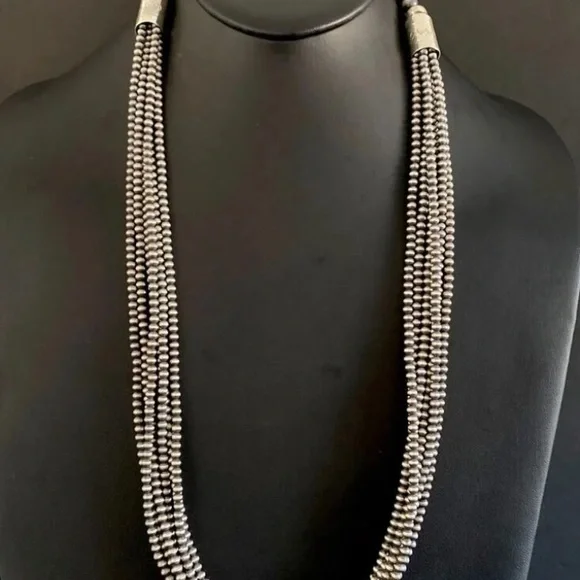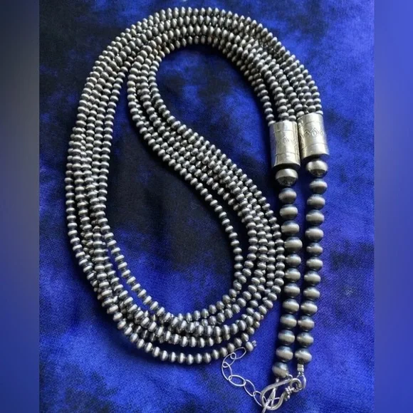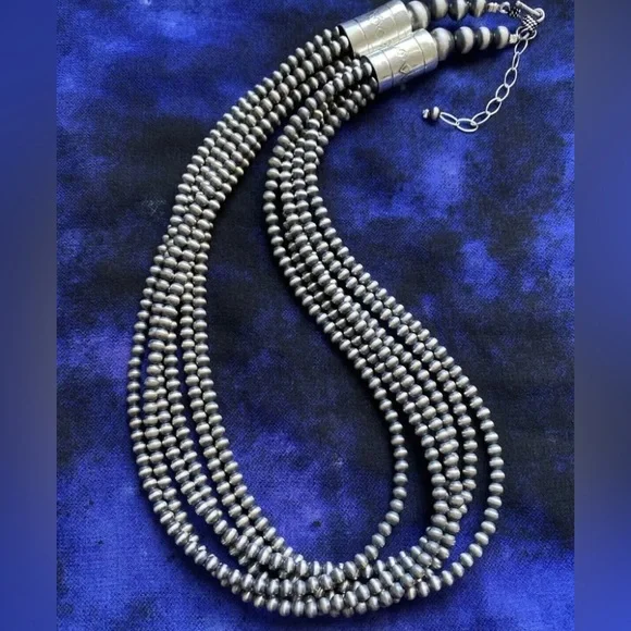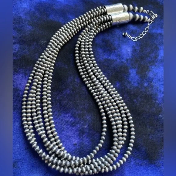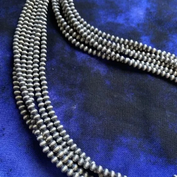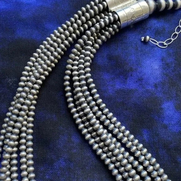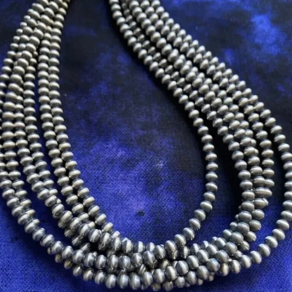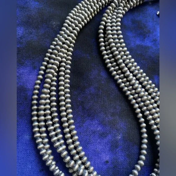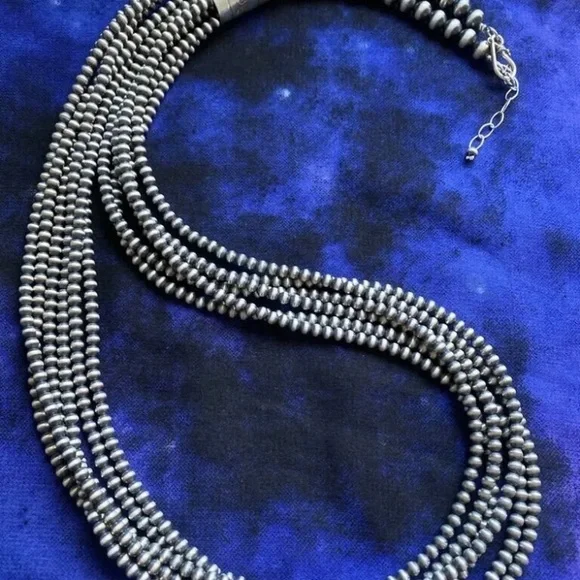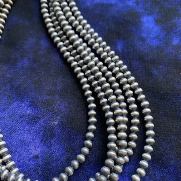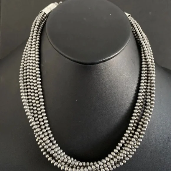 Southwestern 4mm Multi Strand 925 Sterling Silver Oxidized Pearls Bead Necklace. 16 Inch.Lobster clasp with extender chain.Pictures show various lengths available in store.Best Offers Accepted!