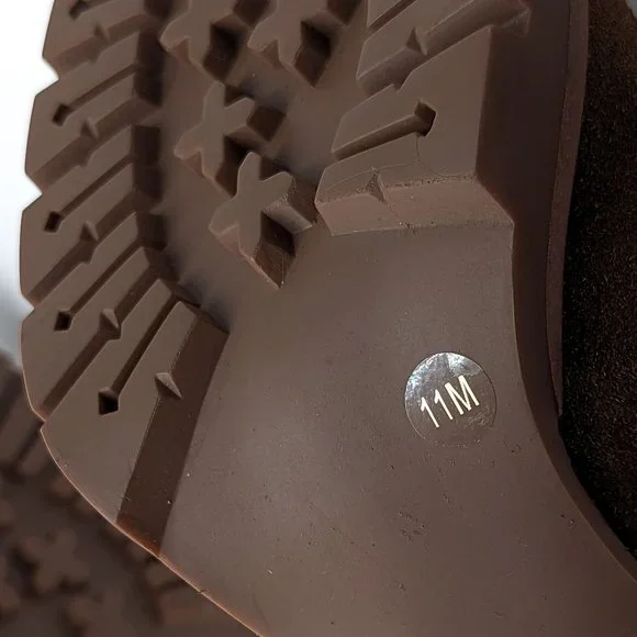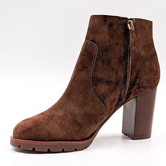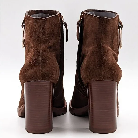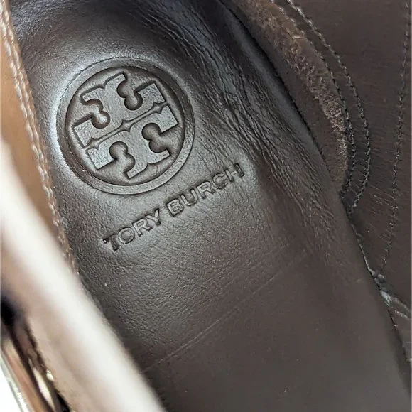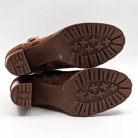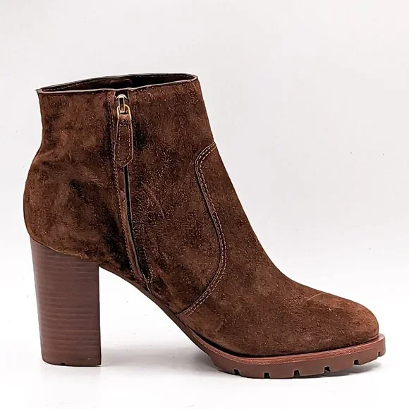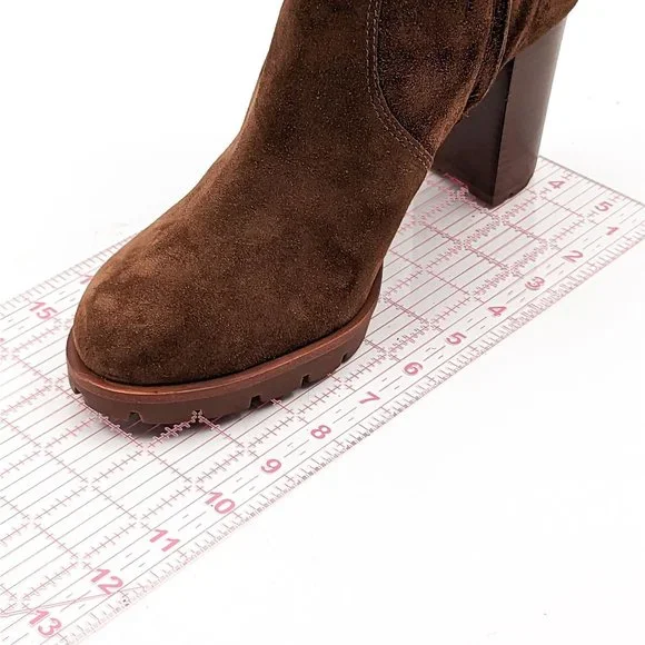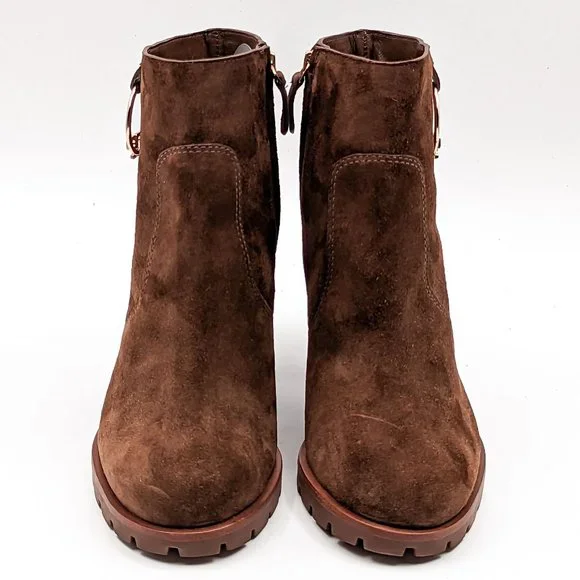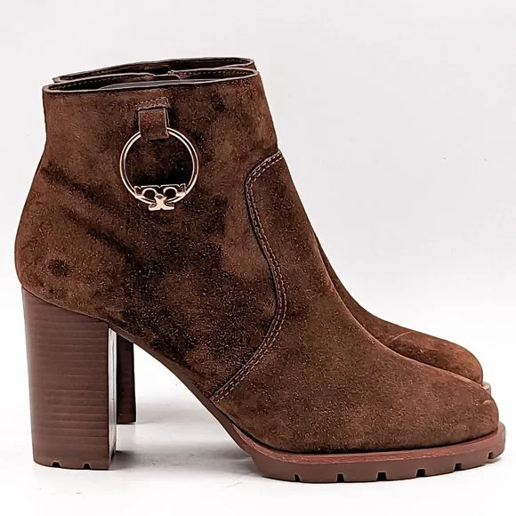 Tory Burch Women Sofia 85 Lug Sole T Logo Heeled Brown Suede Boots size 11