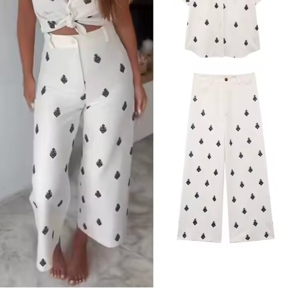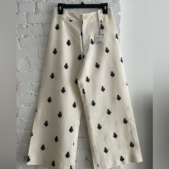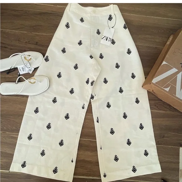 Zara linen embroidered pants trousers Linen blend NEW WITH TAGS SIZE SMALLWaist 14.5”Rise 13.5”Inseam 26”