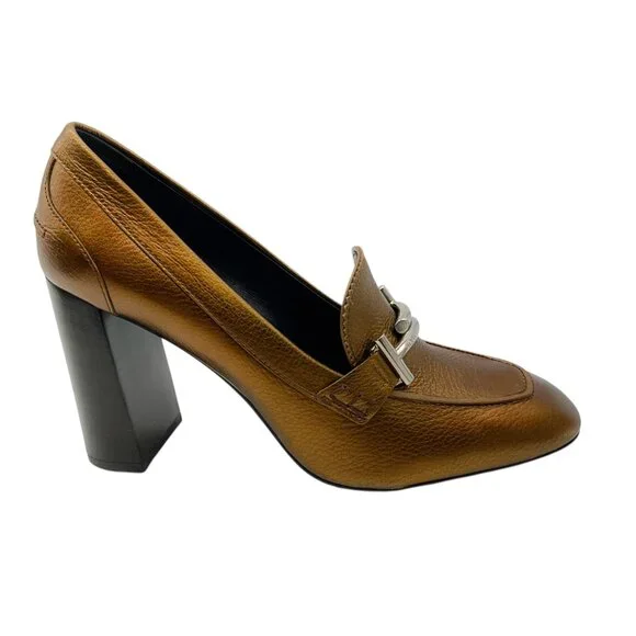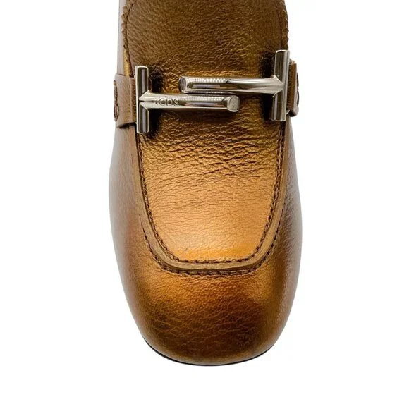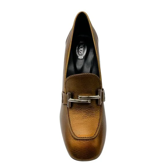 Tod´s Bronze Metallic Leather Heeled Loafer Pumps