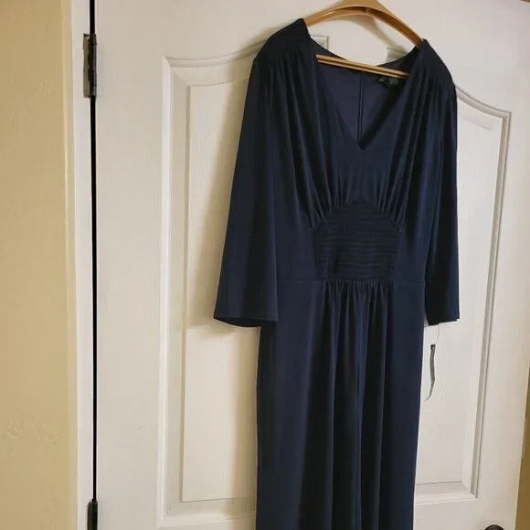Maggy London Navy Blue 3/4 sleeve V-NeckRomper Size 8 NWT